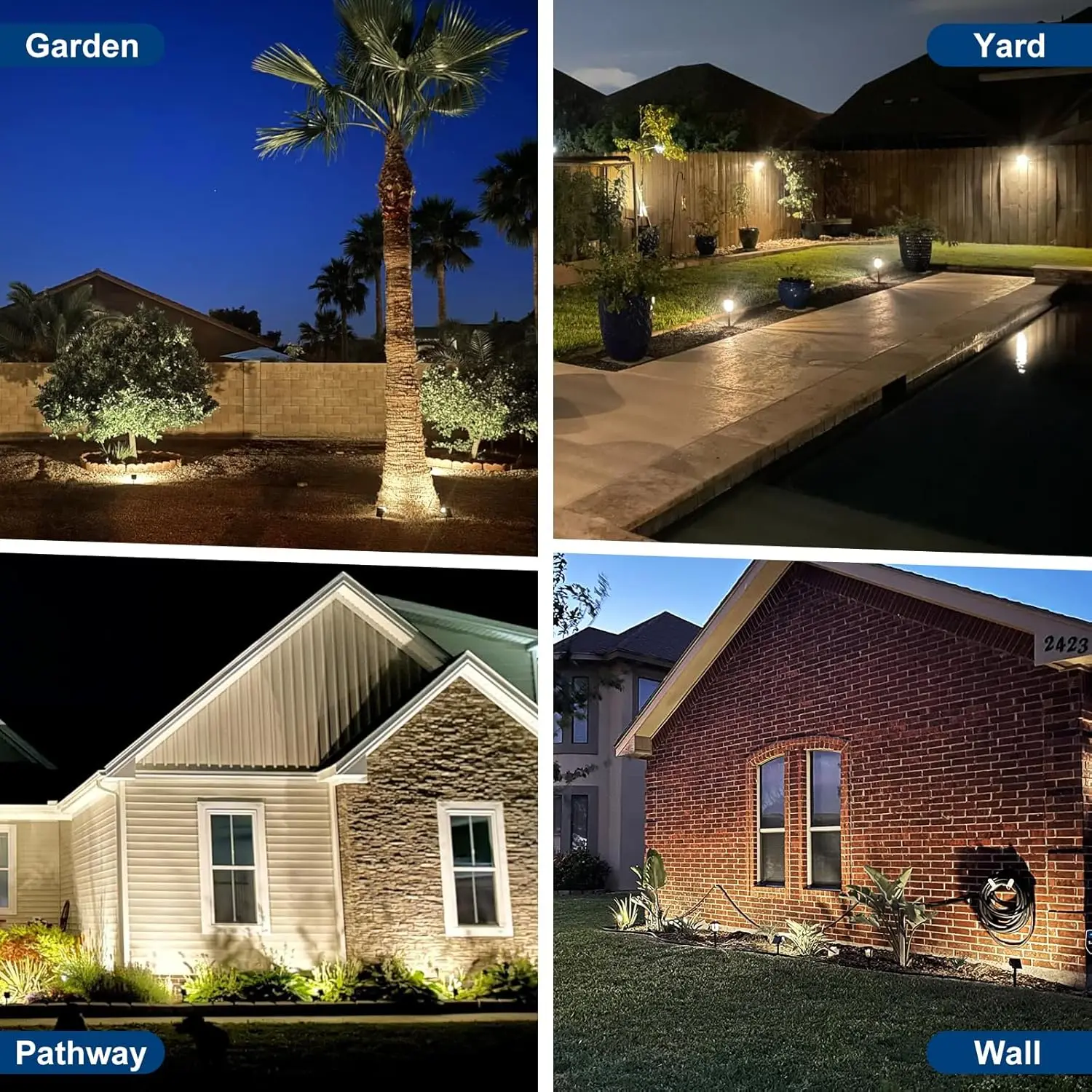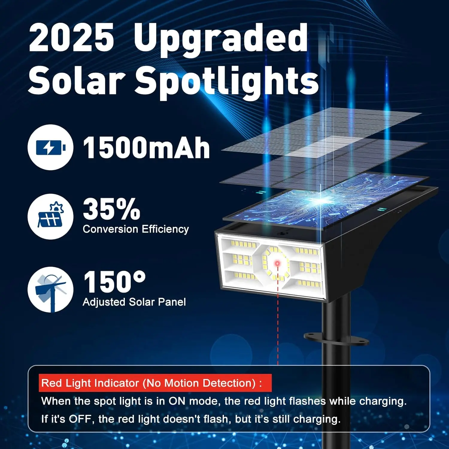 【High-Efficiency Solar Lighting】Featuring a large monocrystalline silicon panel with reflective PET film, these solar lights achieve up to 35% energy conversion efficiency for optimal charging. The automatic day-charging and dusk-lighting system ensures effortless operation—simply switch to 'On Mode' during first use. With at least 8 hours of sunlight daily, they fully charge to provide reliable illumination all night long. 【Versatile Brightness Options】Choose from 4 adjustable lighting modes to suit any outdoor setting: low light mode (24+ hours), medium light mode (20+ hours), high light mode (10+ hours), and breathing light mode (10+ hours). Perfect for gardens, yards, pathways, and landscapes, these lights adapt to your specific brightness needs while enhancing ambiance. 【Long-Lasting Illumination】Equipped with 56 high-quality LEDs and a built-in 1500mAh rechargeable battery, each spotlight delivers consistent lighting for 10–24 hours based on sunlight exposure. The 150° adjustable head allows precise light direction, creating perfect effects for any area without increasing electricity costs—harness solar power for brighter, more durable performance than typical spotlights. 【Easy Installation & Flexible Use】No wiring or external power required! Install effortlessly using the included stake to insert into ground as landscape lights for gardens, driveways, lawns, or pathways. Alternatively, mount on walls with provided screws to illuminate yards, patios, or porches. These energy-efficient options beautify outdoor spaces with simple setup. 【Durable Weatherproof Design】Constructed from ABS high-strength material rated IP68 waterproof, these lights operate in temperatures from -4°F to 140°F and withstand harsh conditions like rain, snow, wind, frost, and high heat. Ideal for year-round outdoor use in gardens, pathways, patios, landscapes around trees plants sculptures pools ensuring reliable security decoration. 【Reliable Support】If you have questions about our landscape lighting products contact us via platform messaging; our team responds within 24 hours to assist with satisfaction.
